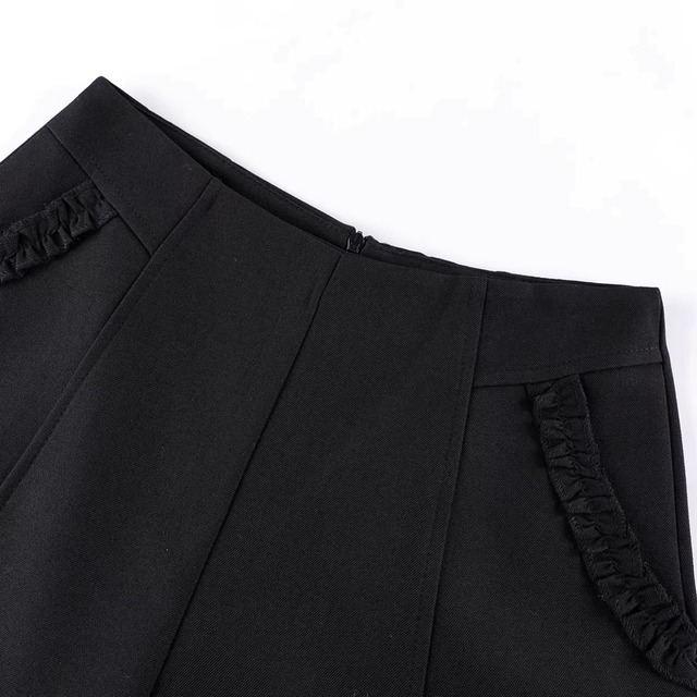 フリルデザインを施したポケット付きショートパンツ。