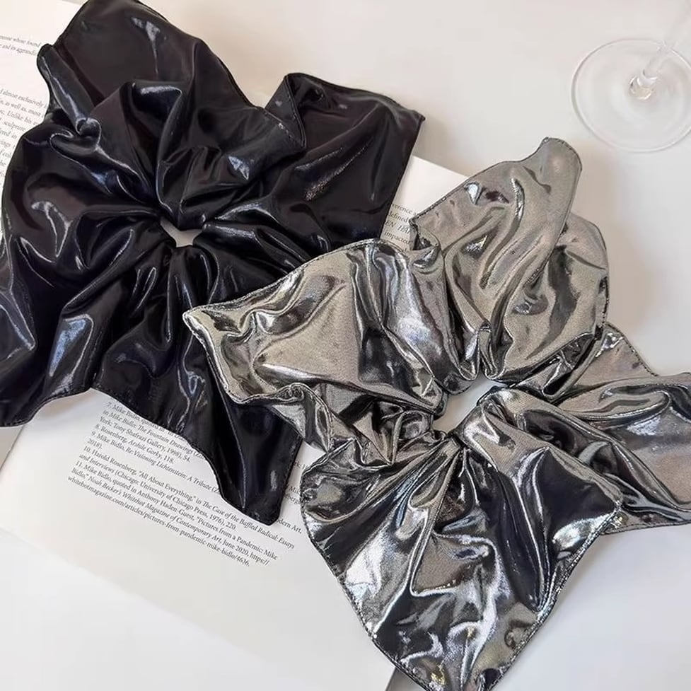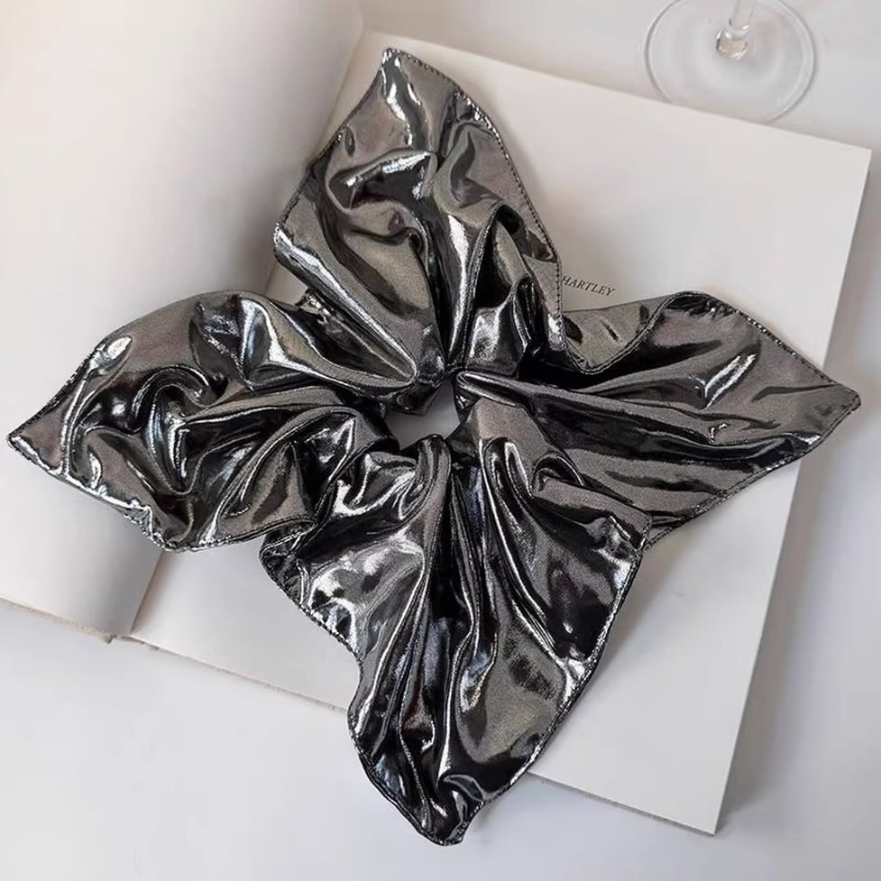 光沢感のあるmetallic素材で、まとめ髪が一気に華やぐビッグシュシュ。