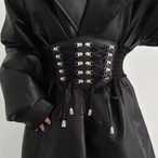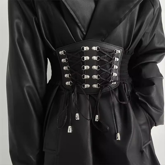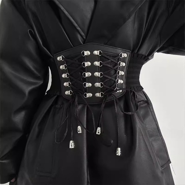 フック金具×レースアップで、存在感のあるコルセットベルト。