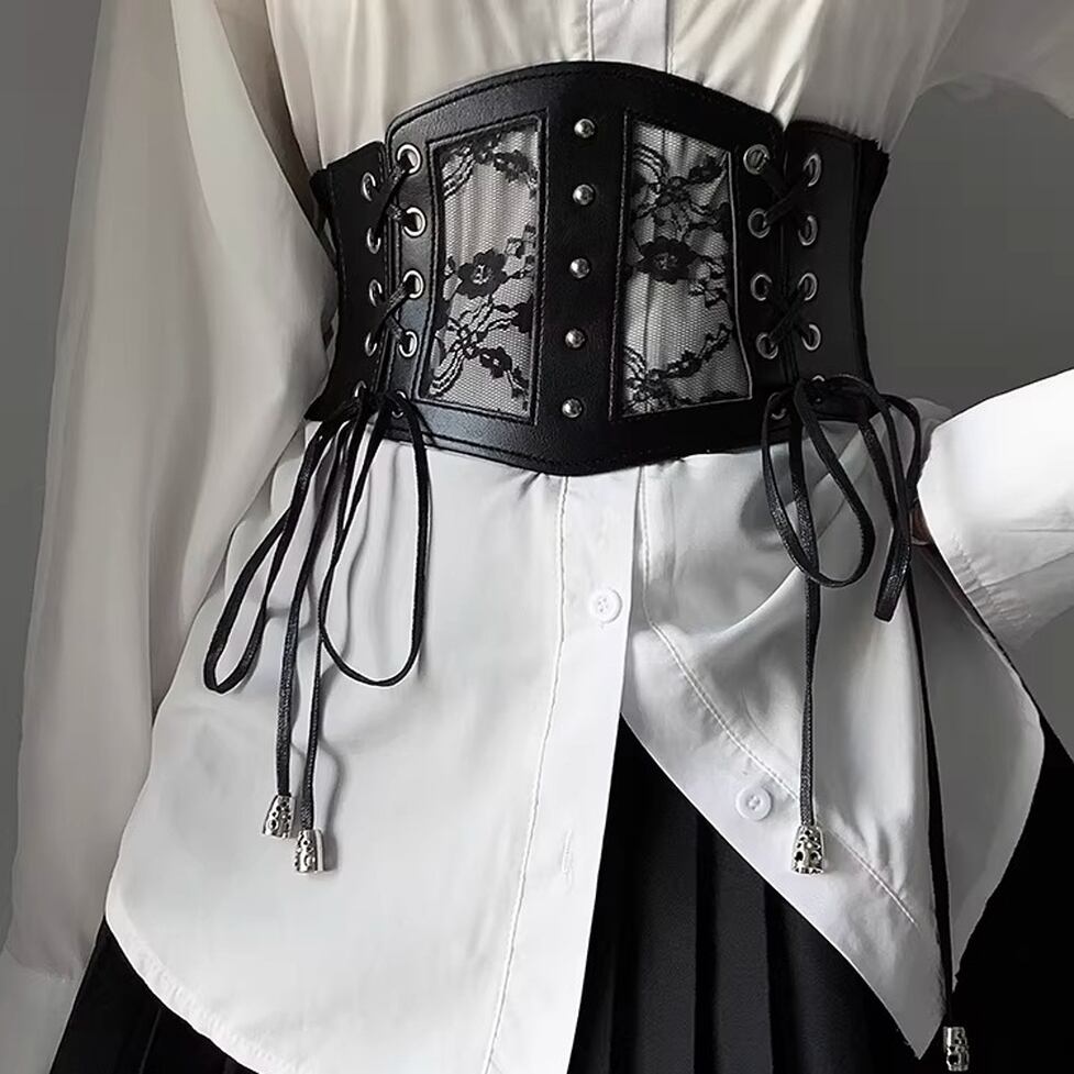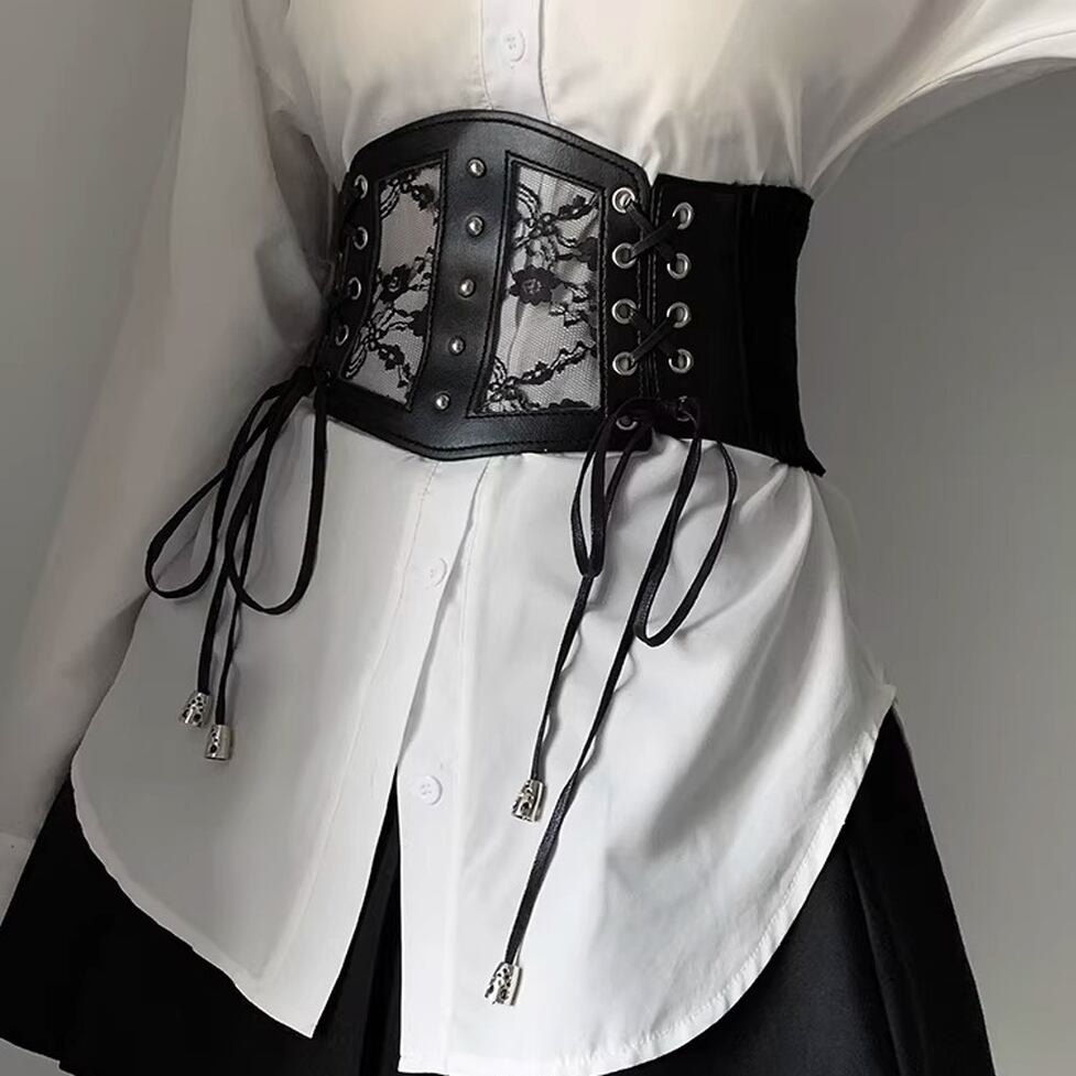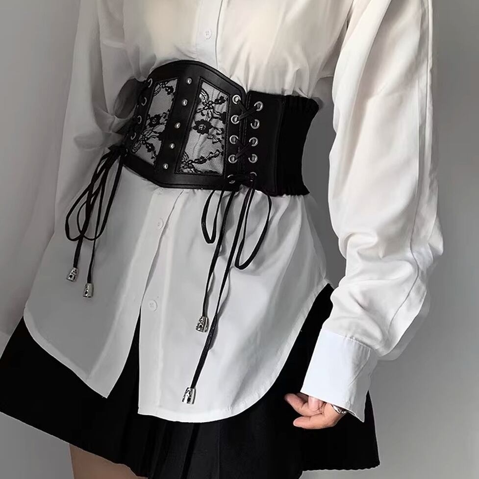 レース切り替えが映える、コルセット風のlace-upベルト。