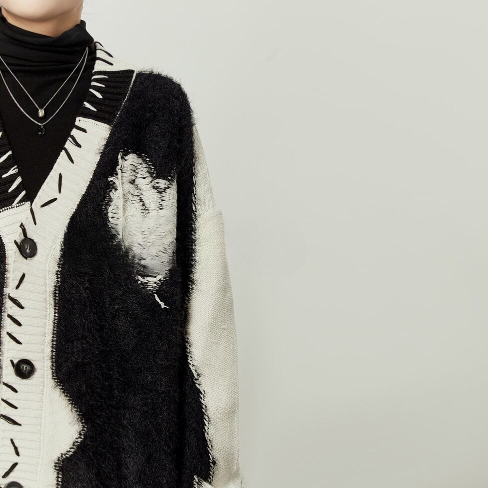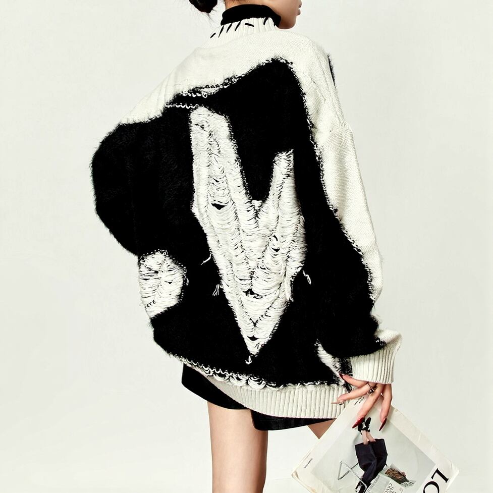 シャギー感のあるニットに、ハートモチーフを落とし込んだ存在感のあるニットトップス。