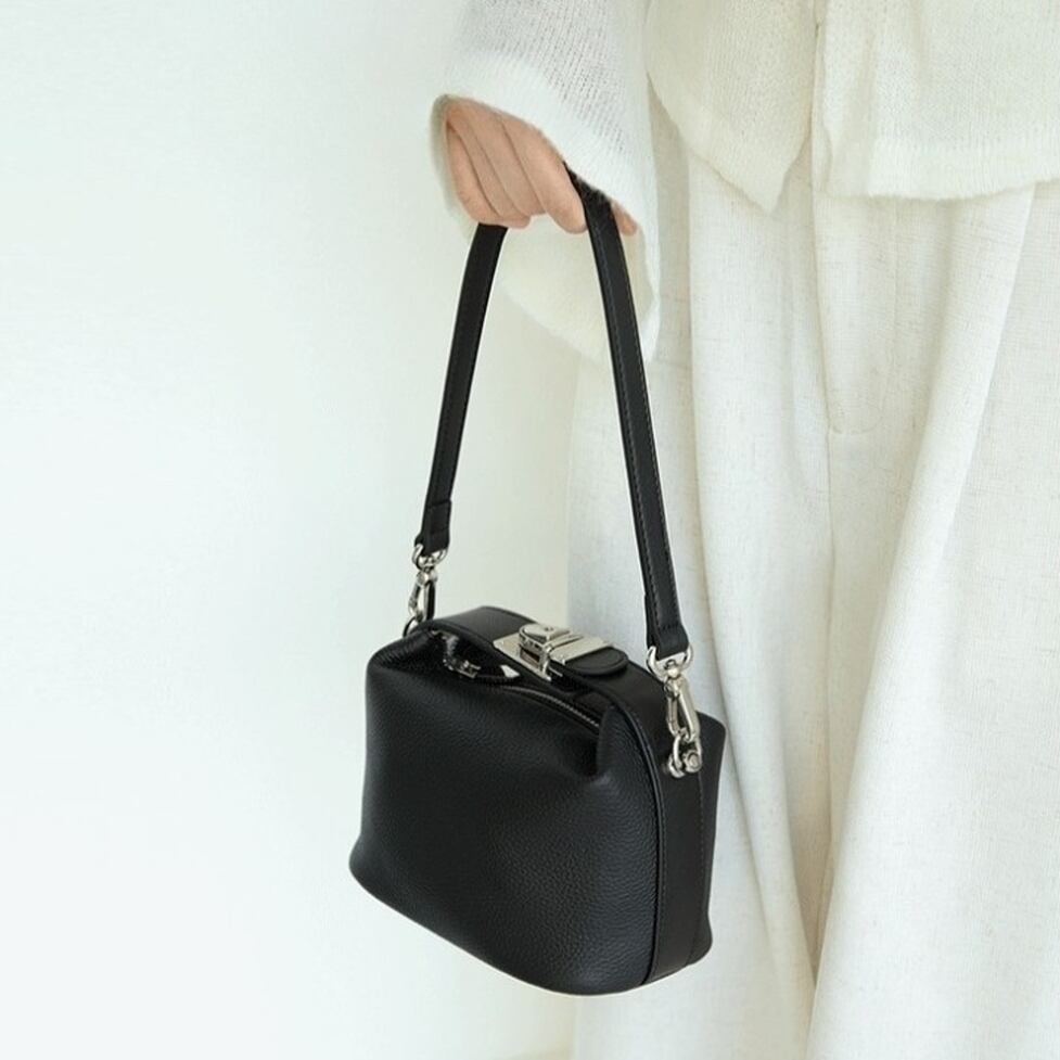 コロンとしたボックスシルエットが特徴のデザインミニバッグです◎高見えするシンプルデザインなので、普段使いから特別な日にもお使いいただけます。