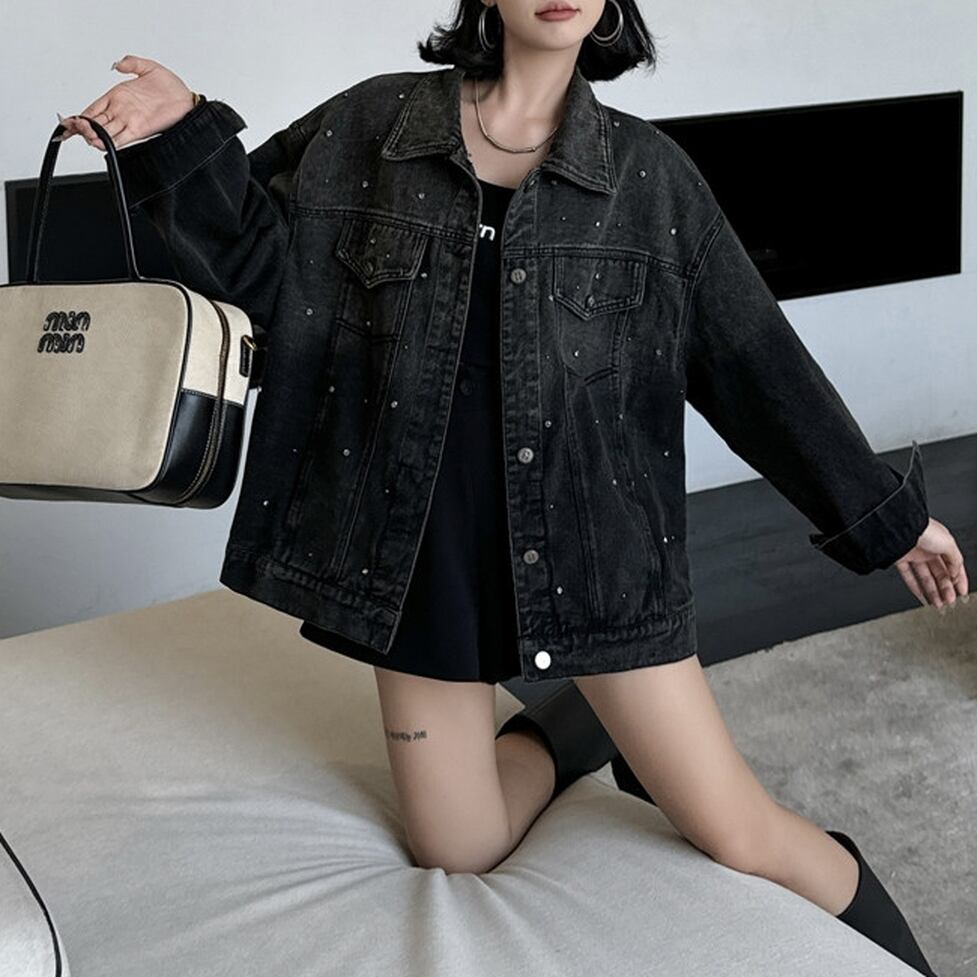 rhinestone denim over jacket / l0276