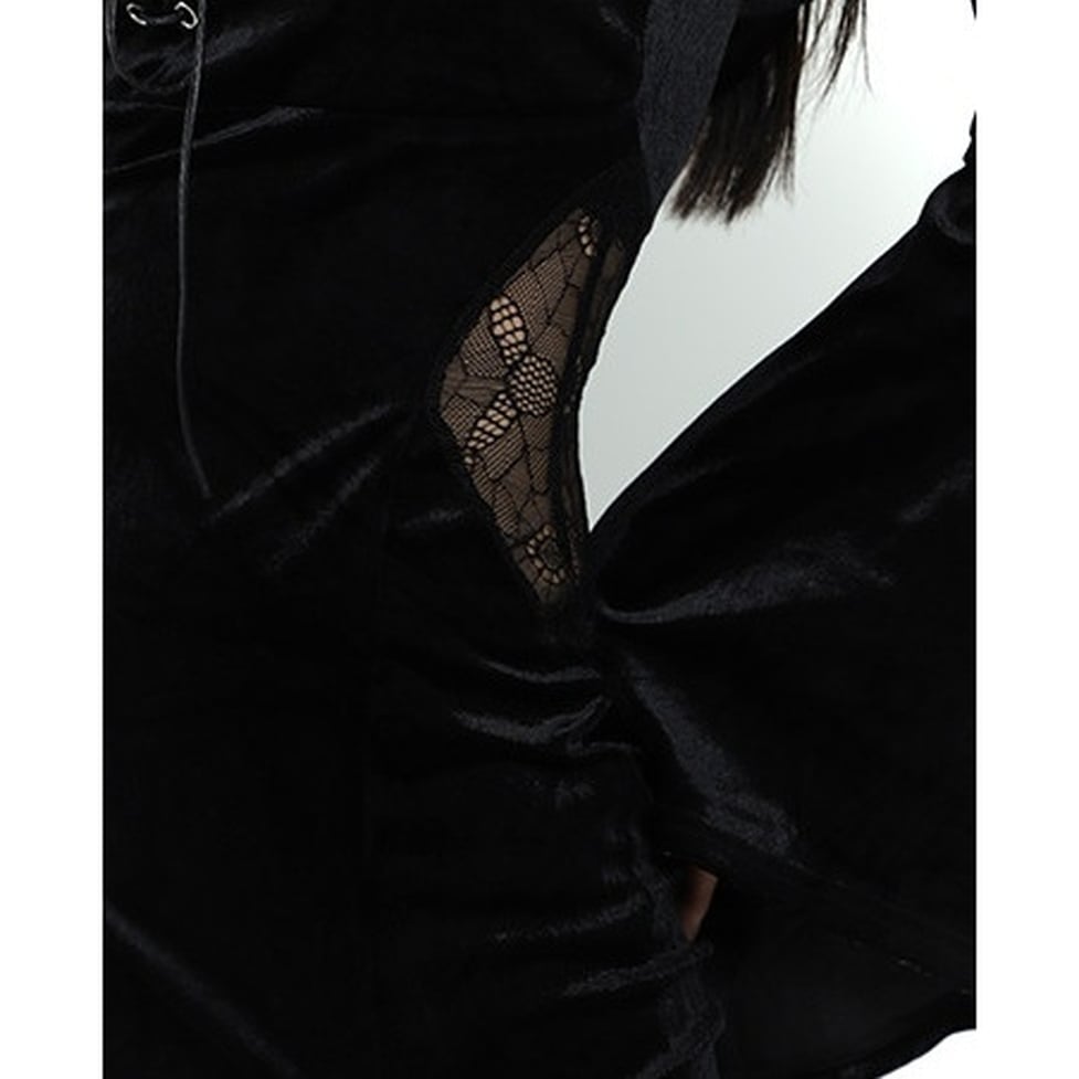 ウエストサイドに施されたレースが、ブラックの中にさりげない女性らしさを添えます。
