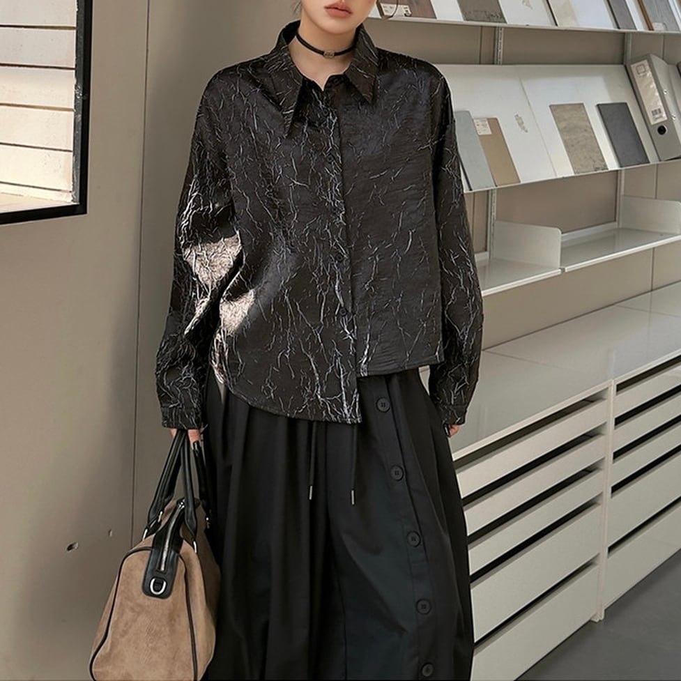 shiny hem design shirt / l0237