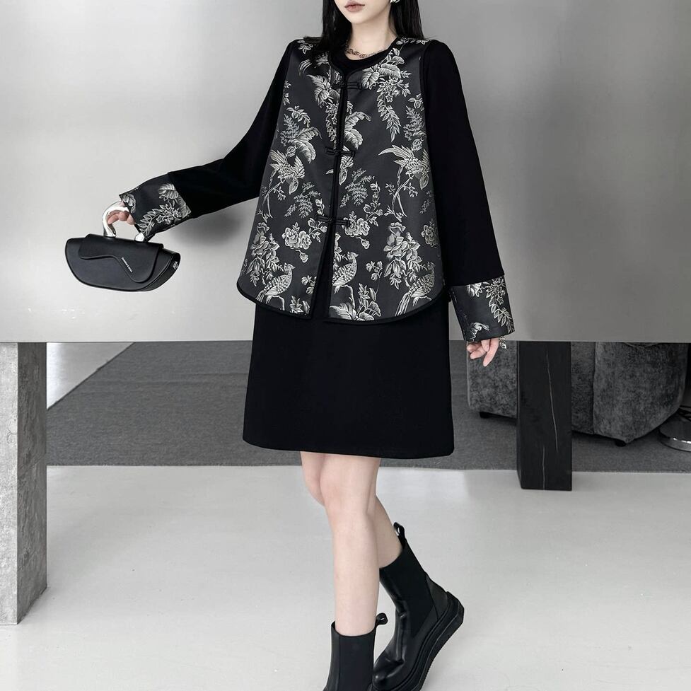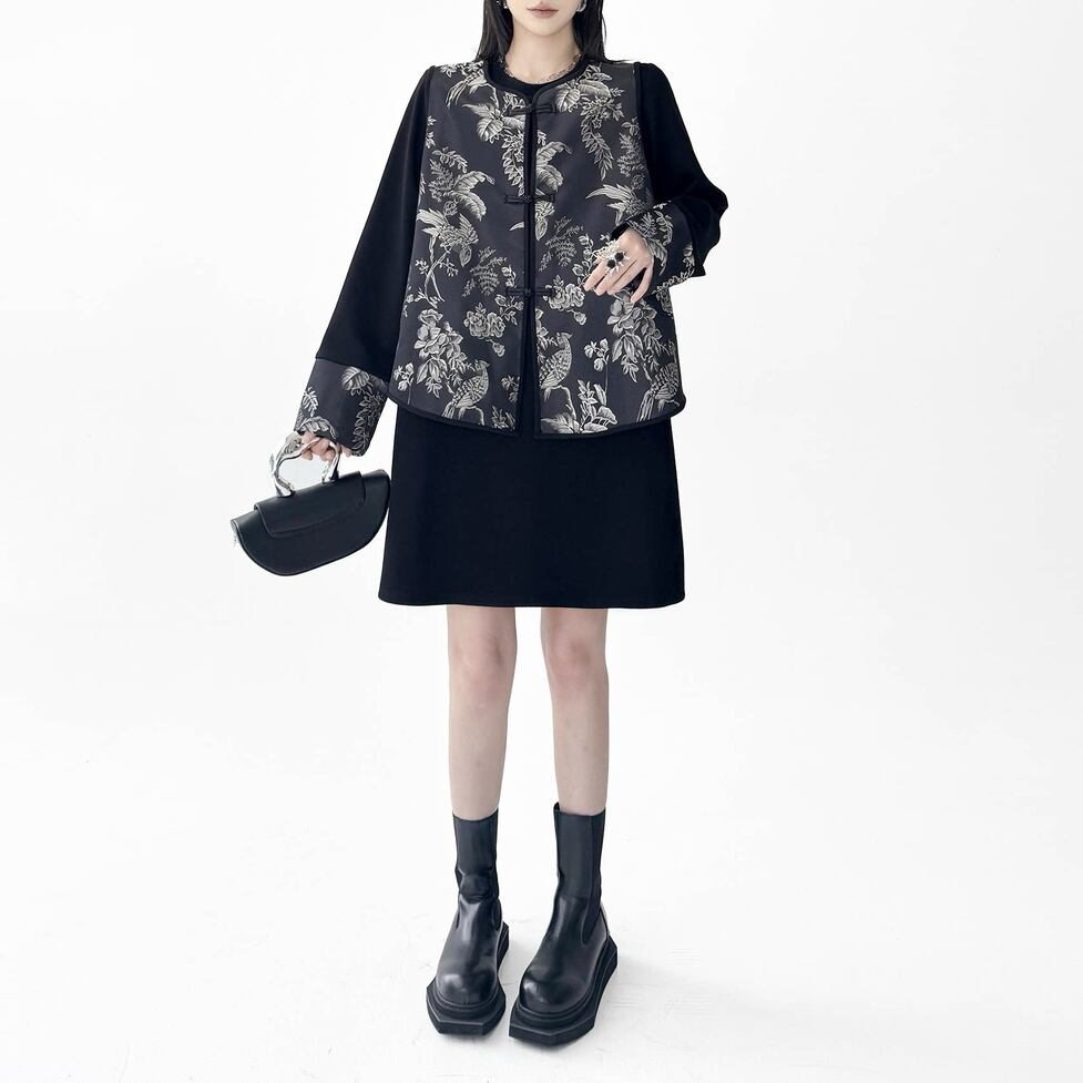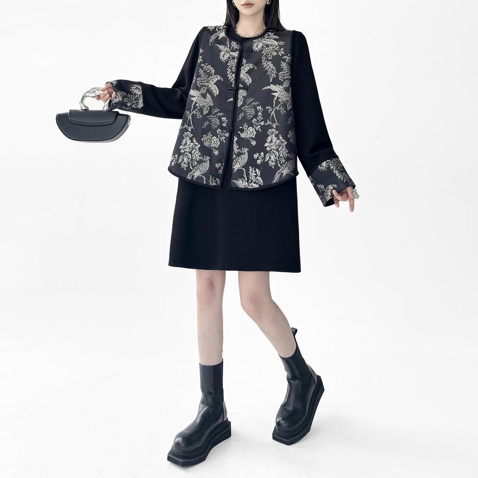 繊細な総柄が目を引くチャイナ風セットアップ。