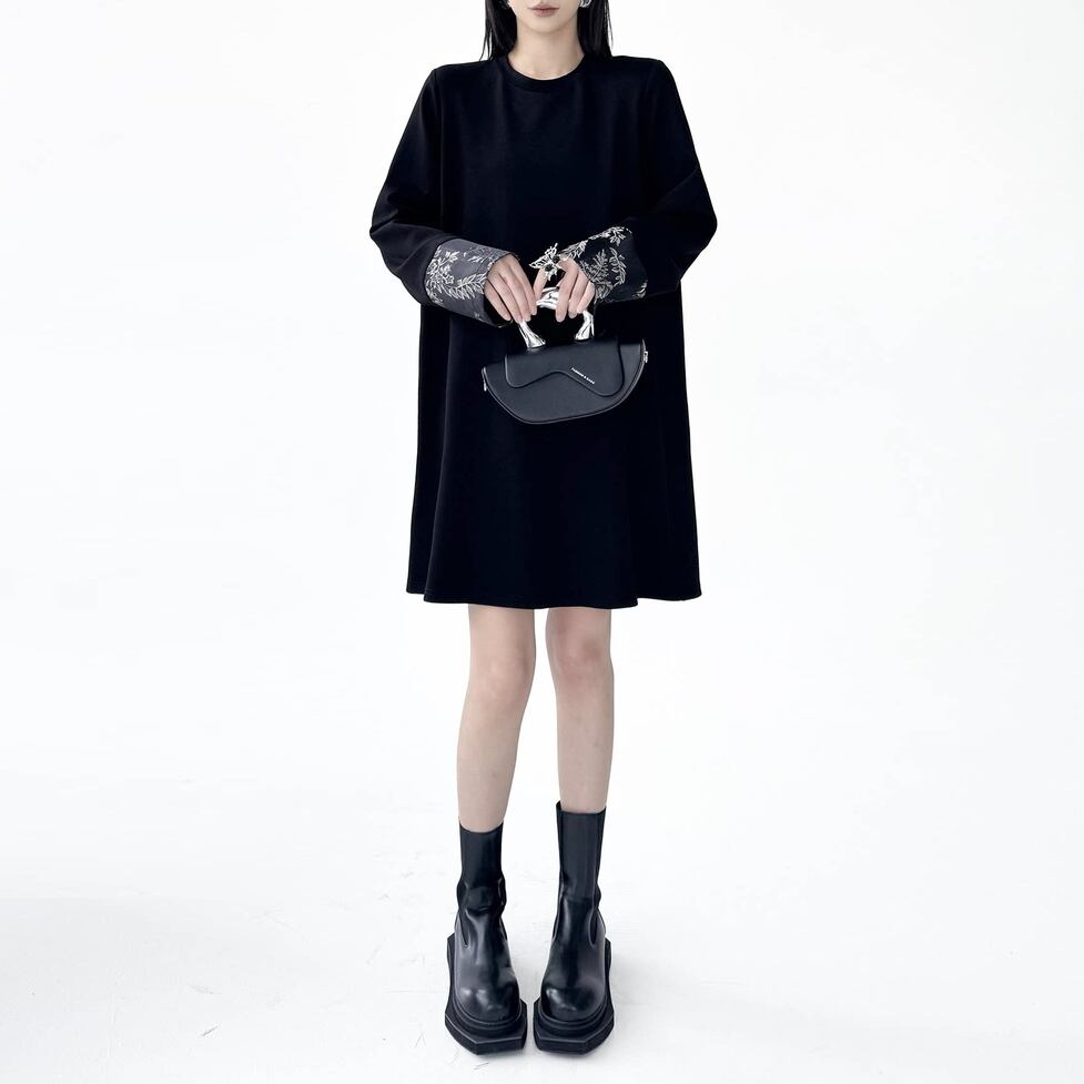 落ち着いた配色が甘さを抑え、モードな印象に仕上げてくれます。