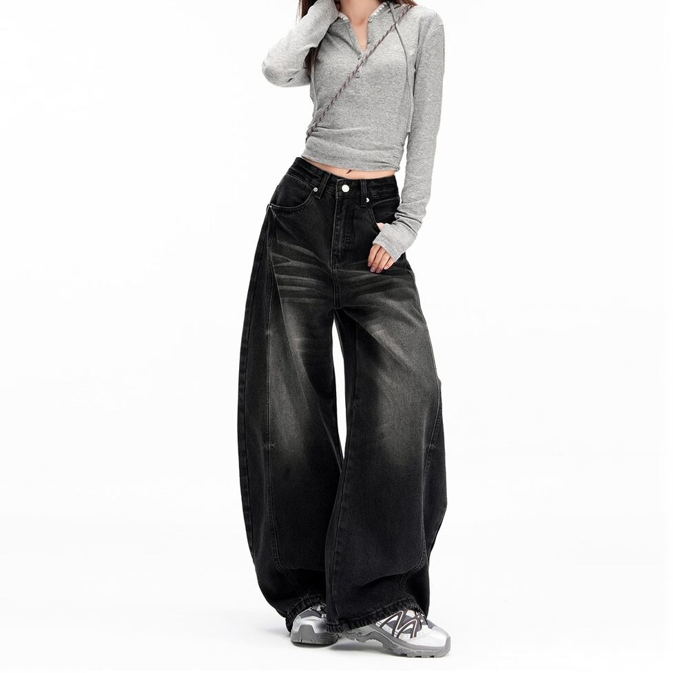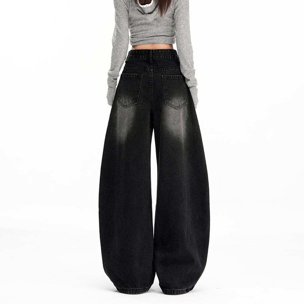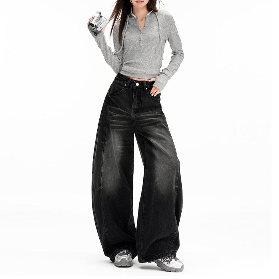 インパクトたっぷりのボリューム感が特徴のワイドデニムパンツ。
