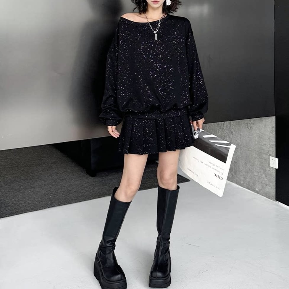glitter pleated skirt setup / l0320