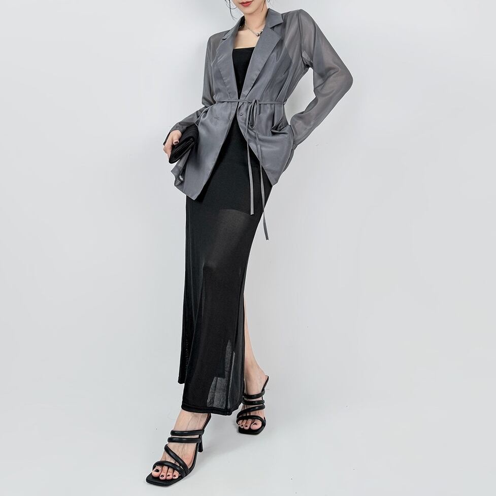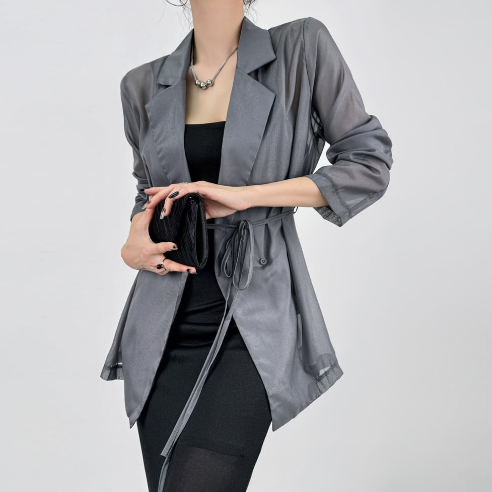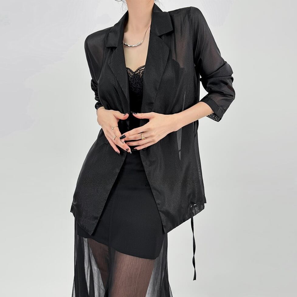 軽やかなシアー素材が抜け感をつくるジャケット。