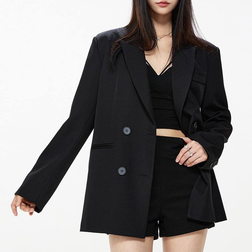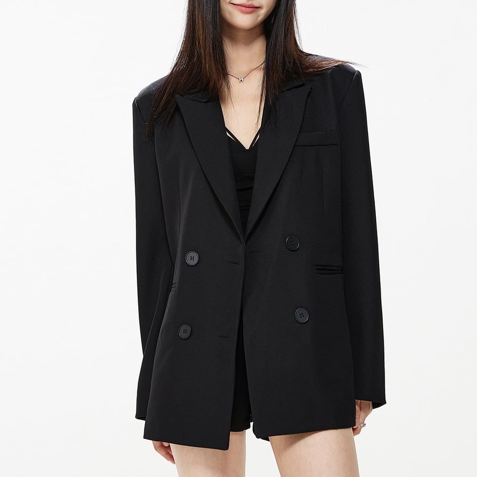 端正なダブルテーラードに、バックレースを落とし込んだ一着。