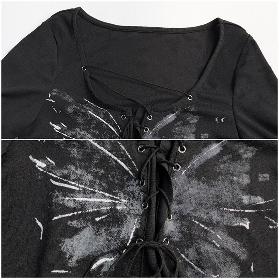 フロントのレースアップとさりげない肌見せが、ウエストラインを美しく引き立てます。
