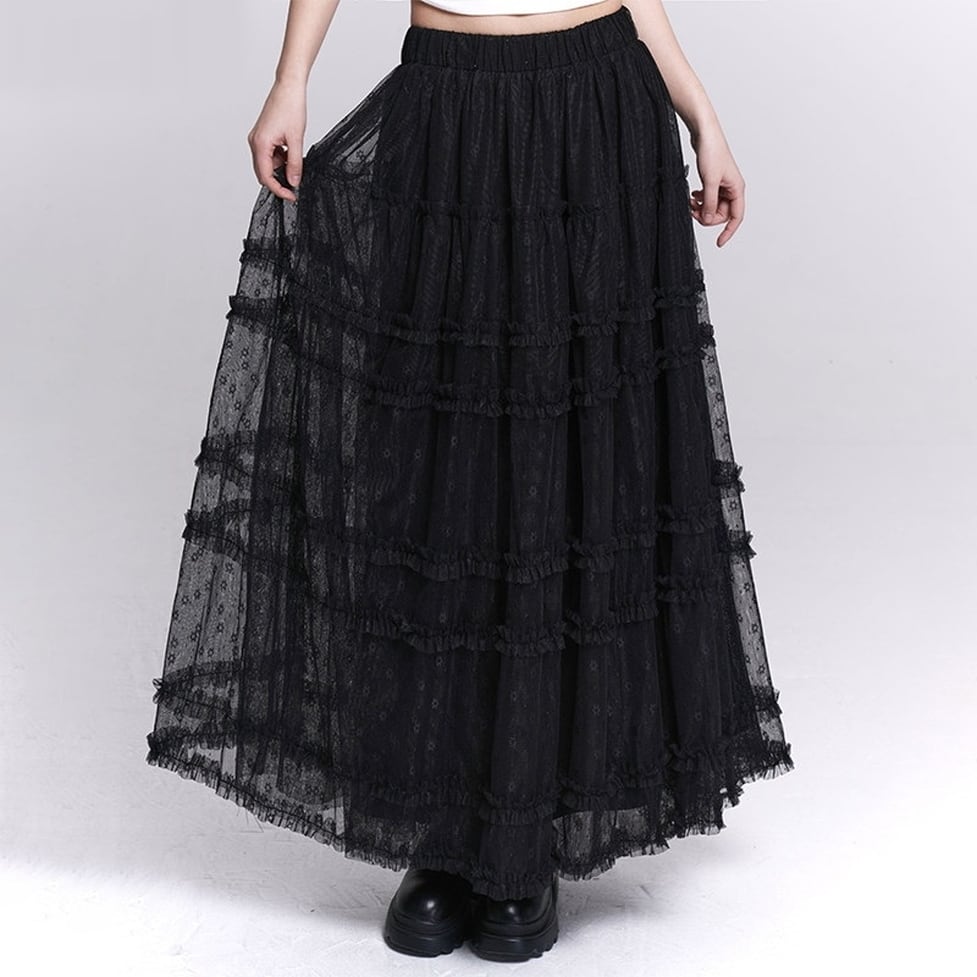繊細なチュールを重ねた、存在感のあるロングスカート。