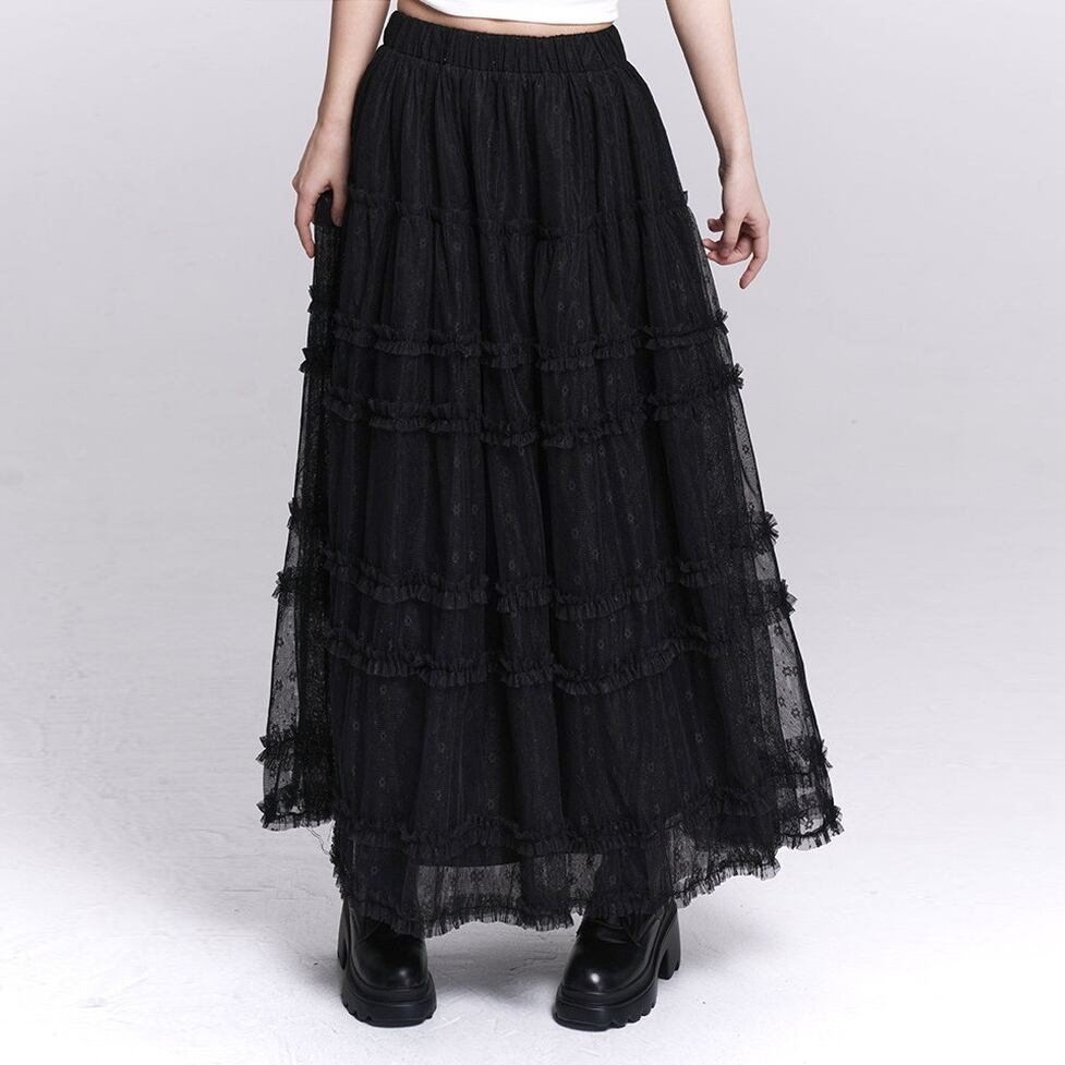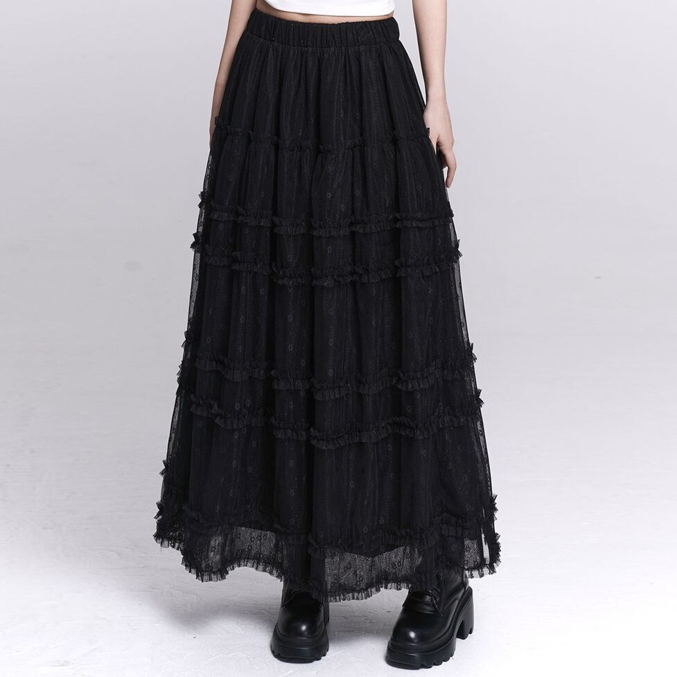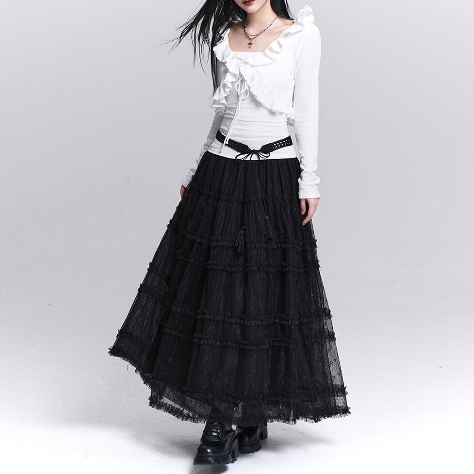 lace tiered long skirt / l0337