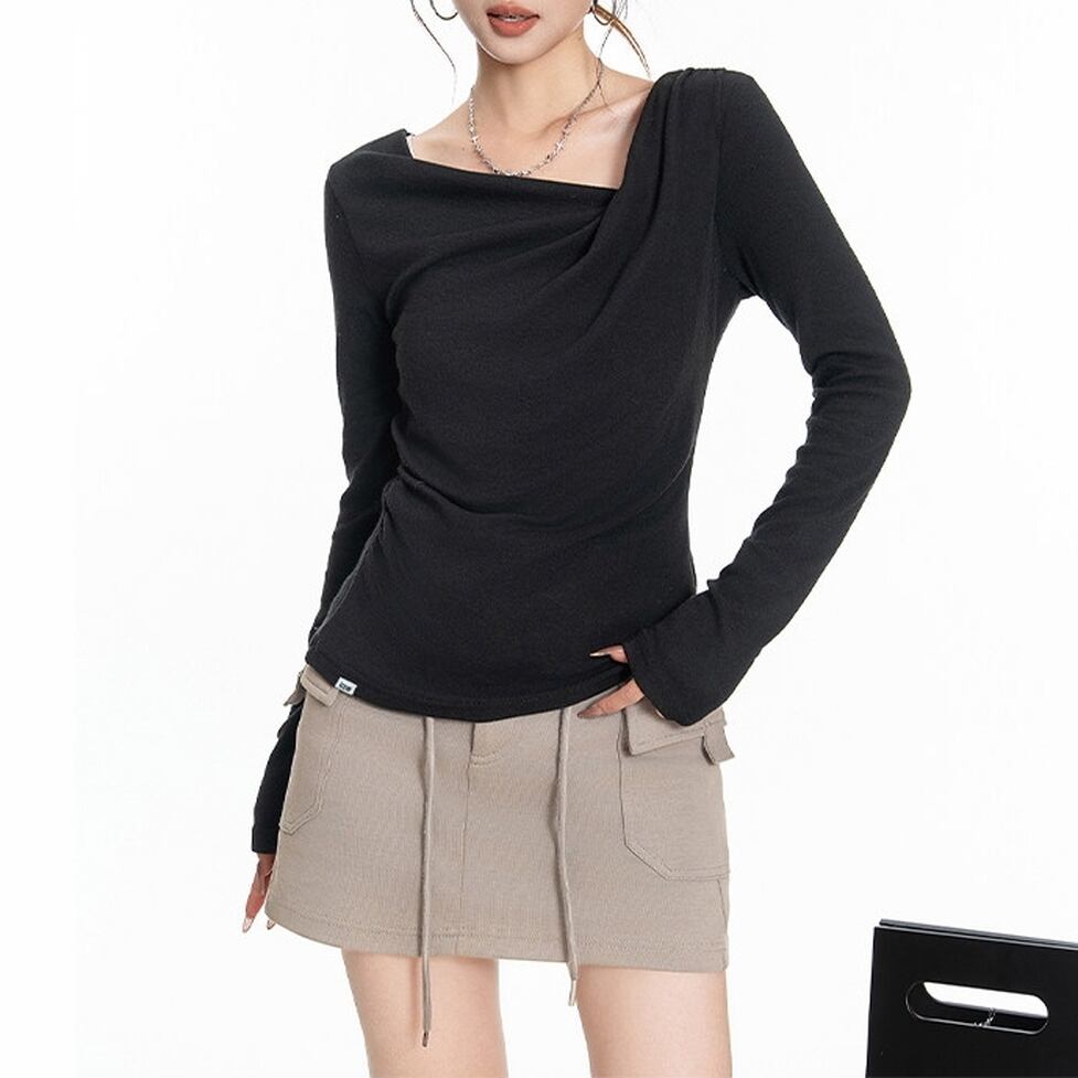 asymmetry drape neck tops / l0342