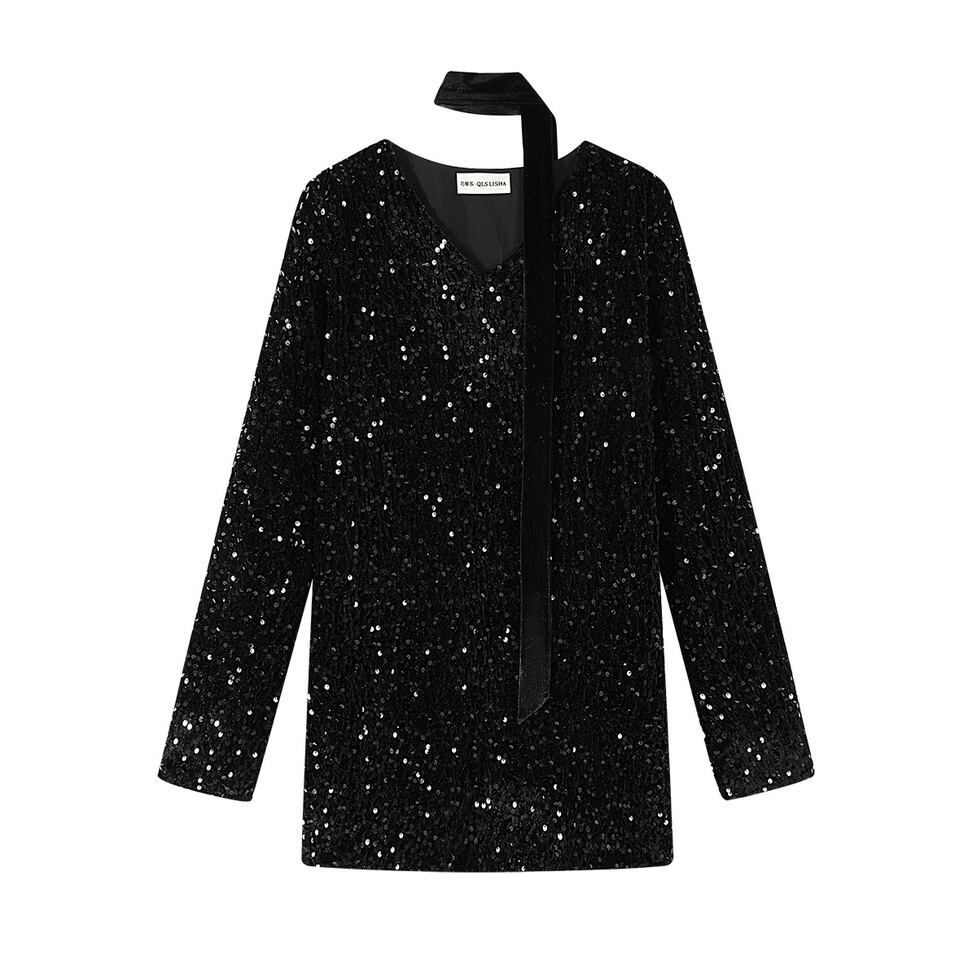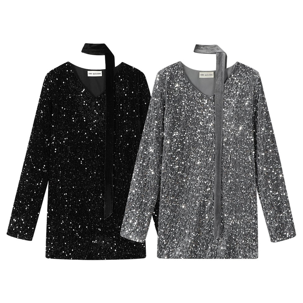 shiny sequin vneck tops / l0328