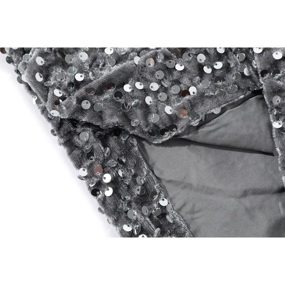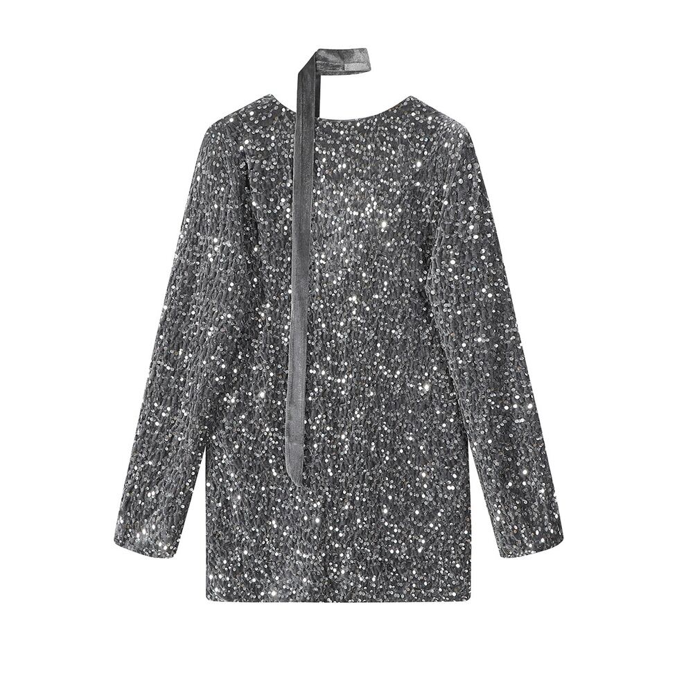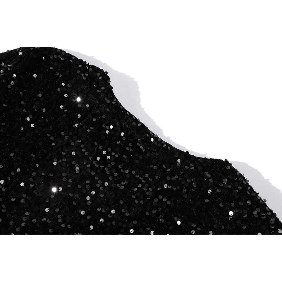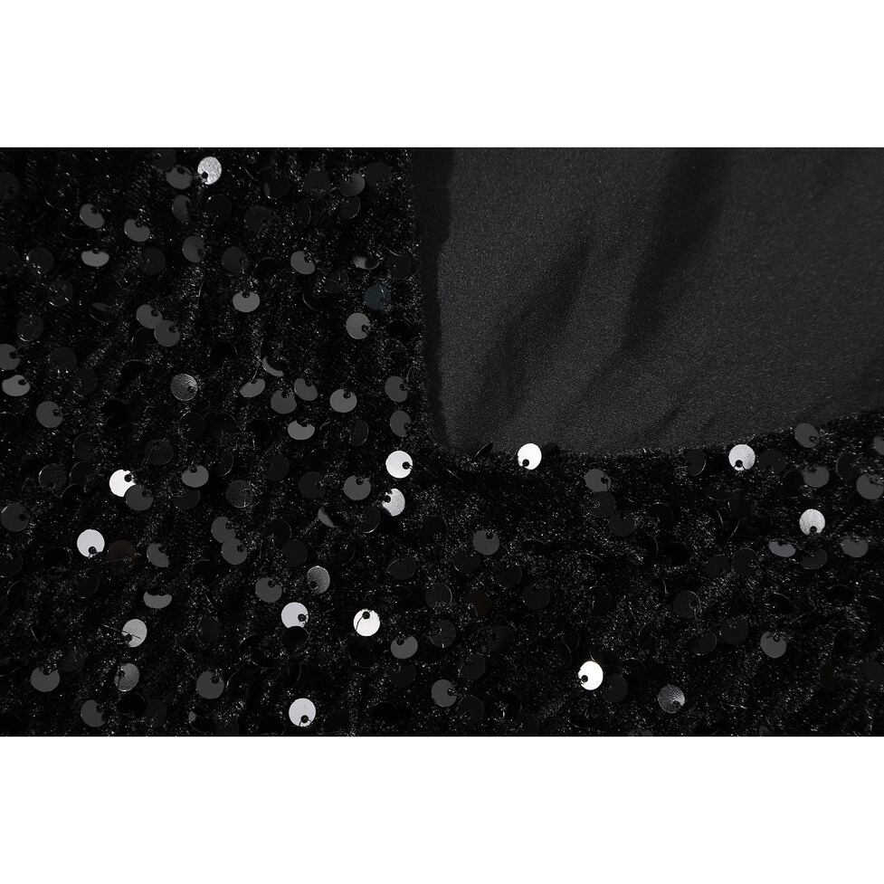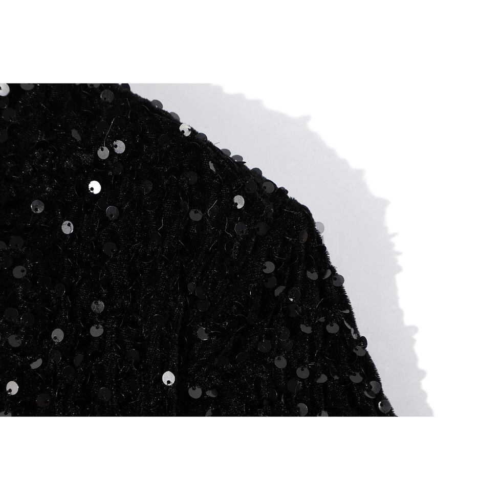 全面に散りばめられたスパンコールが、動くたびにさりげなく煌めくブラックトップス。