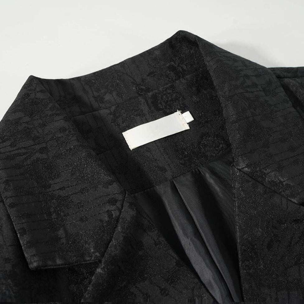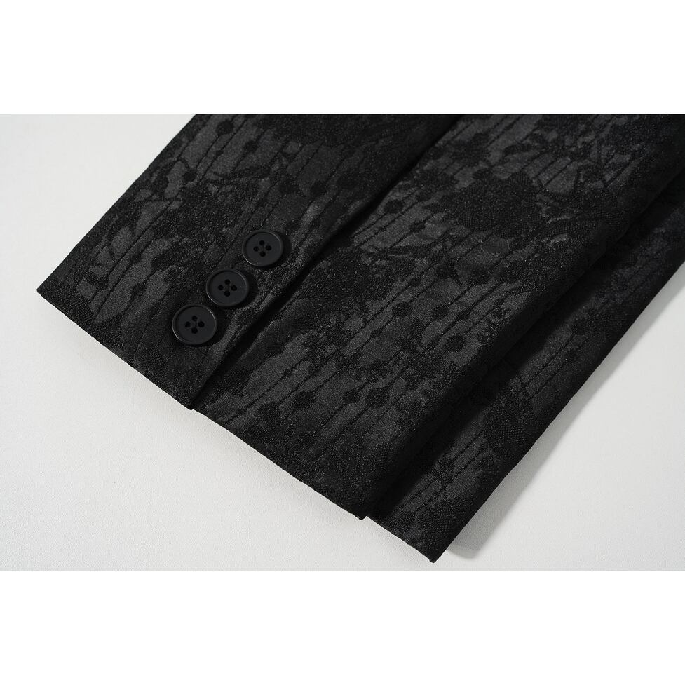 立体的に浮かぶフラワージャガードが、奥行きのあるブラックをつくるダブルジャケット。