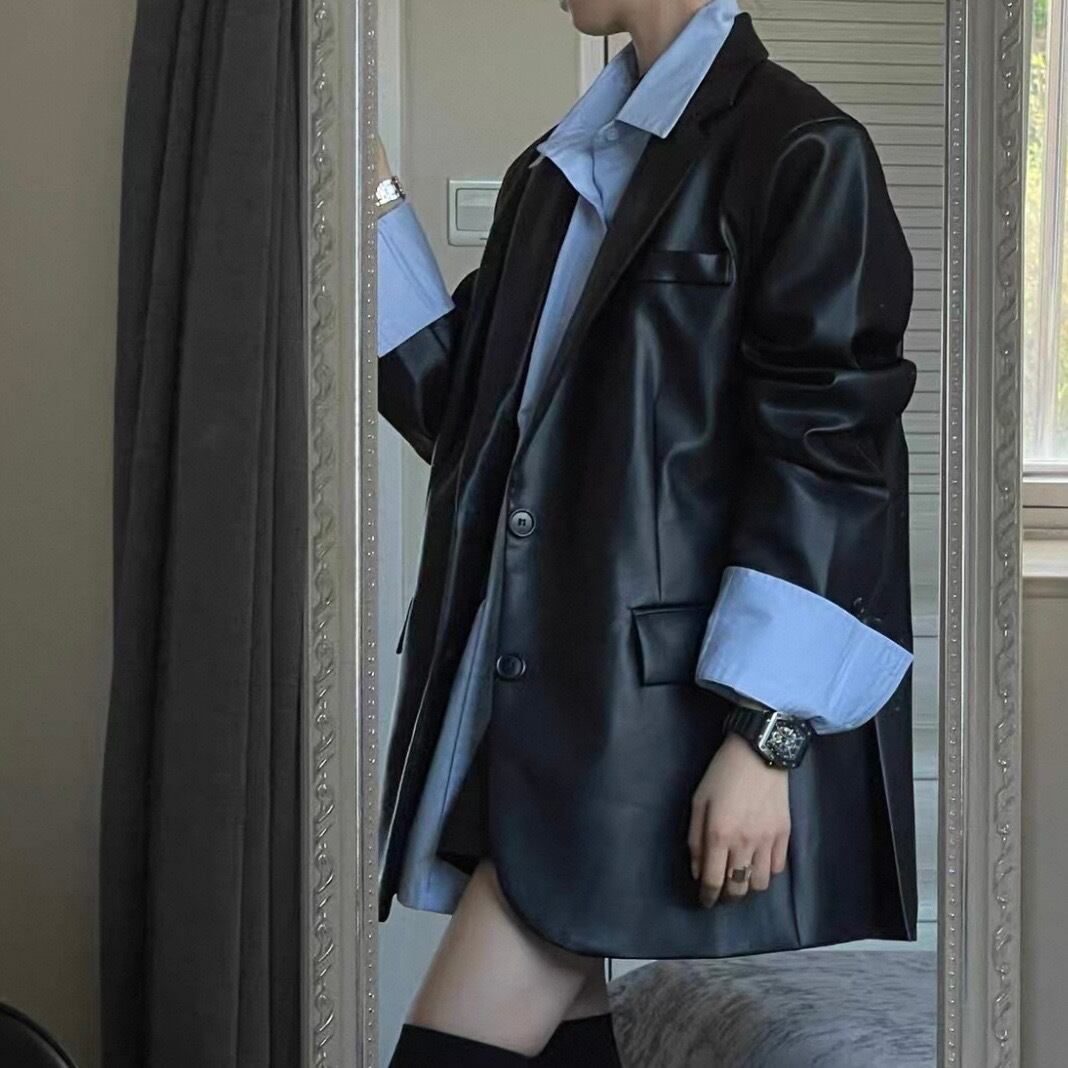 faux leather tailored jacket / l0390