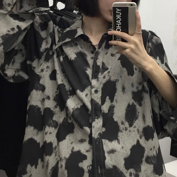 ニュアンス感のある総柄が目を惹くシアーシャツ。