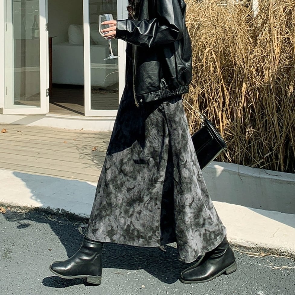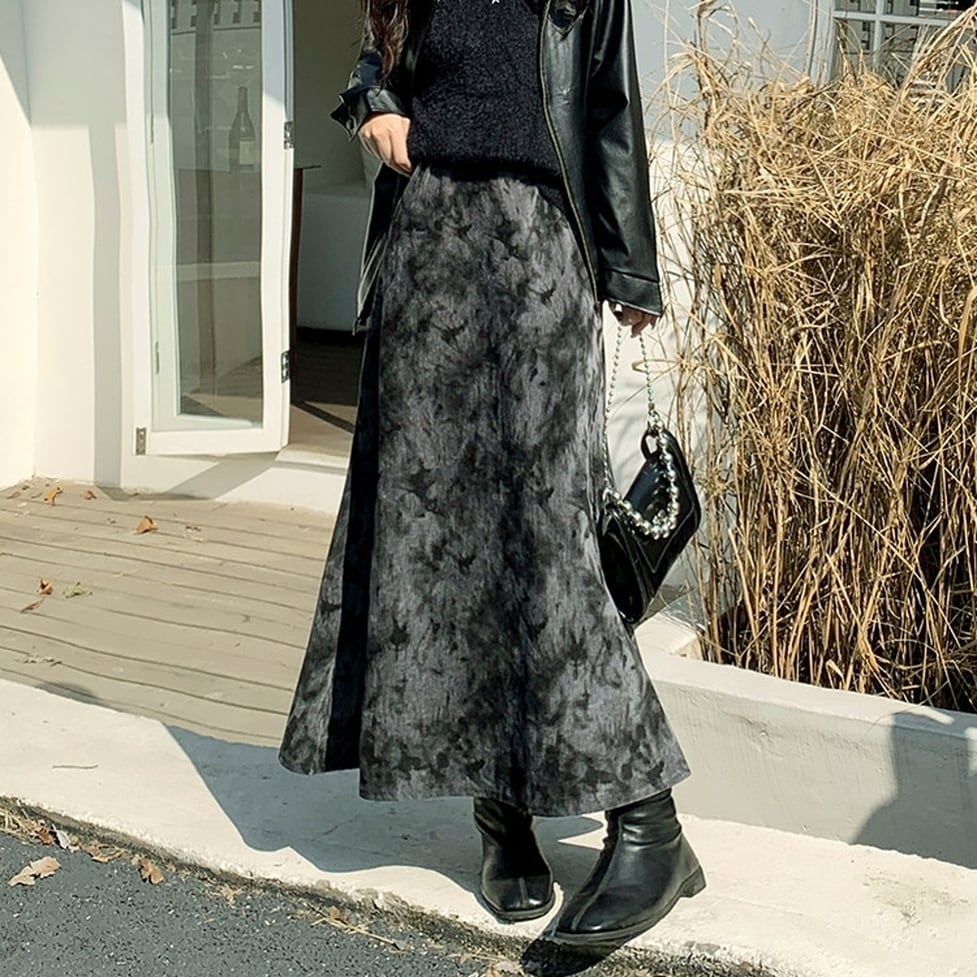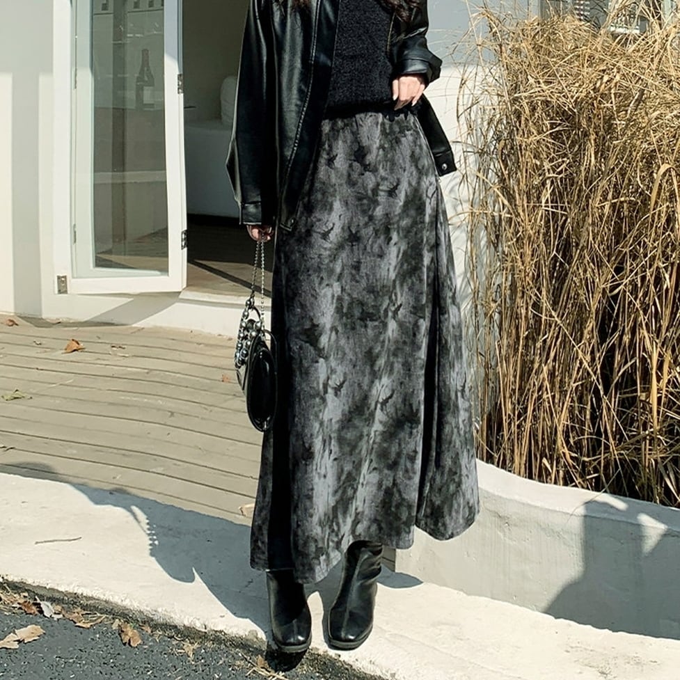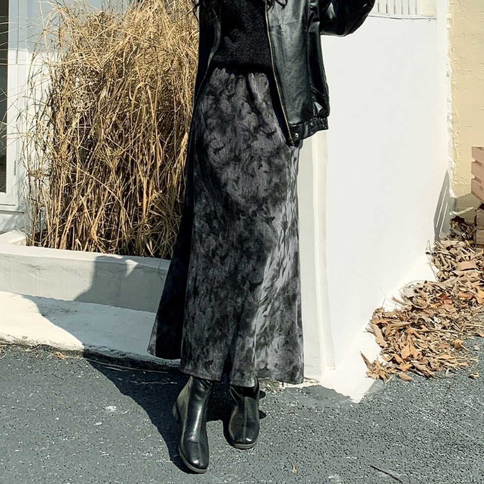 ニュアンス感のあるタイダイ柄が目を惹くロングスカート。