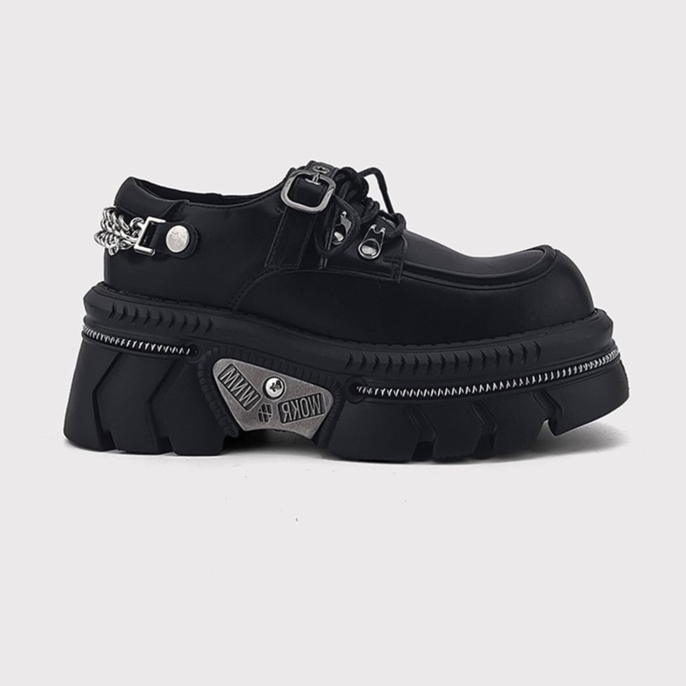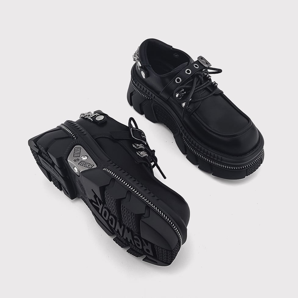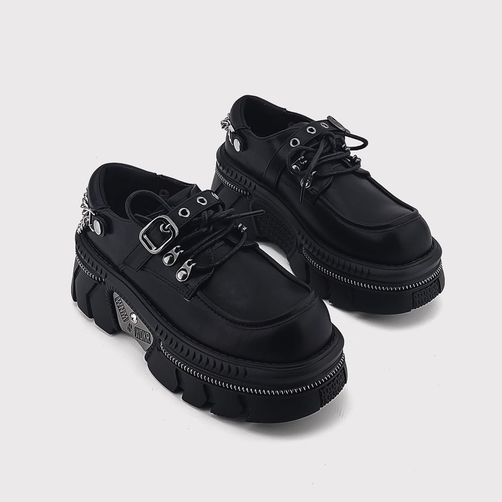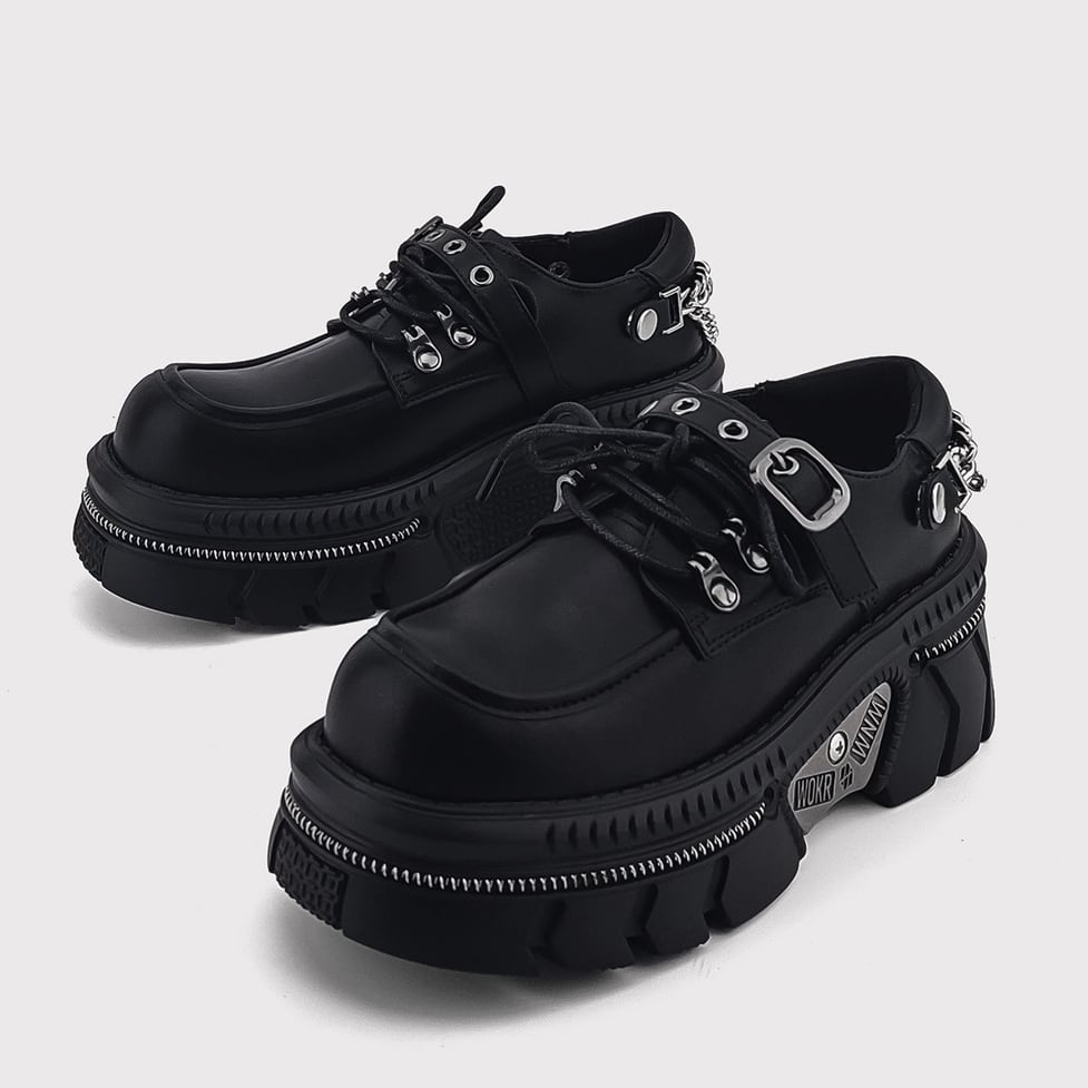 ボリュームのあるソールとベルトデザインが印象的なシューズ。