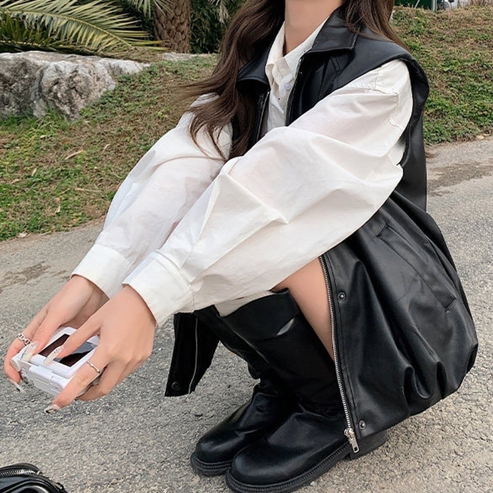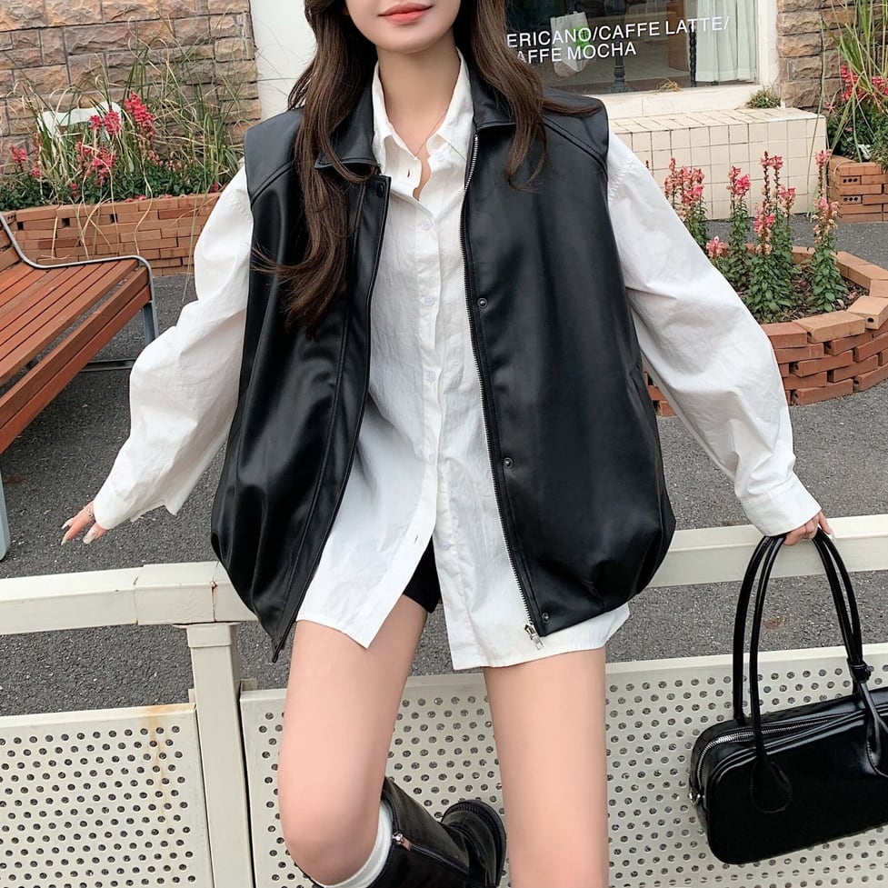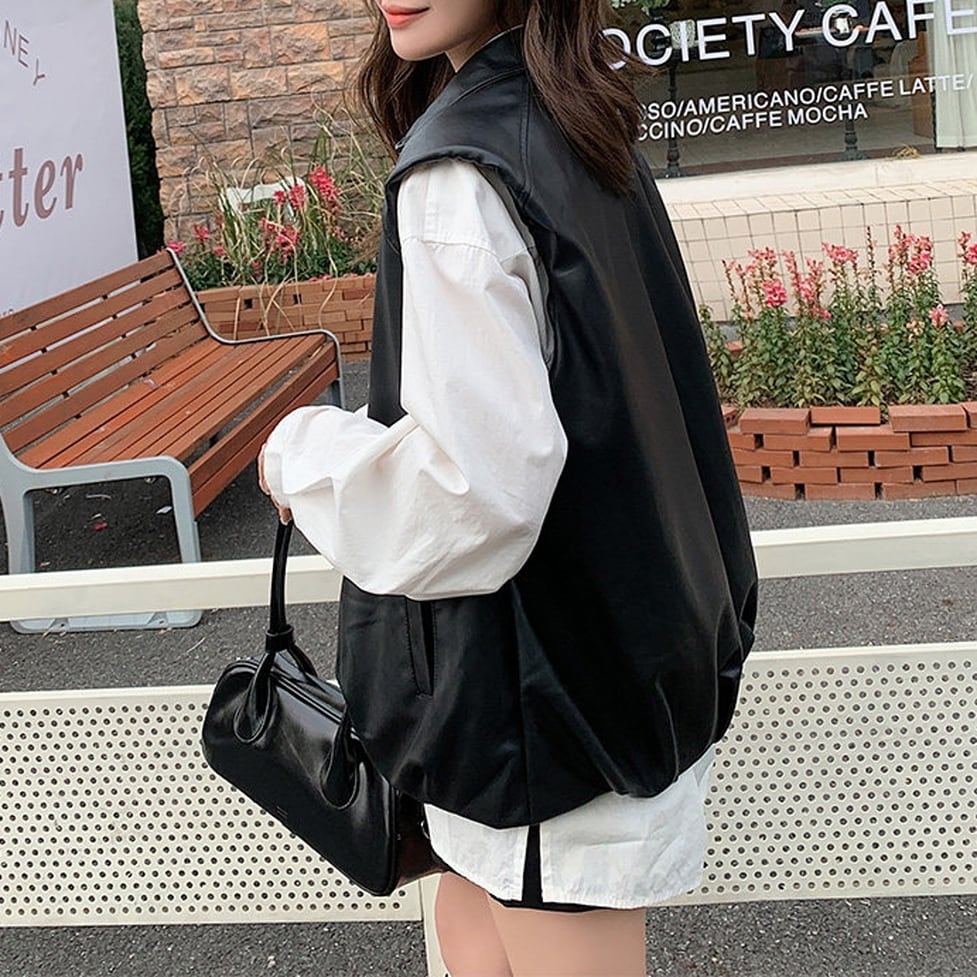 faux leather wide vest / l0383